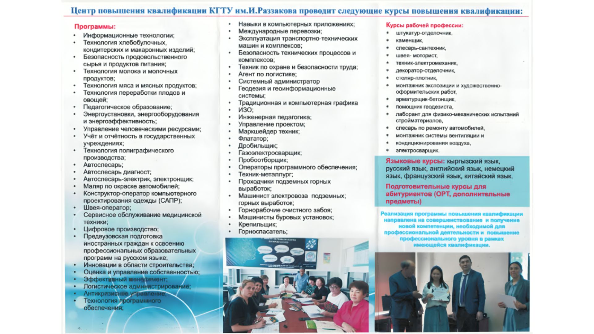 План работы КГТУ им.И.Раззакова