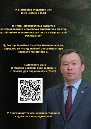 13 ноября 2025 года в рамках Недели науки Кыргызской Республики состоялась гостевая лекция на тему «Перспективы развития возобновляемых источников энергии как фактор устойчивого экономического роста в…