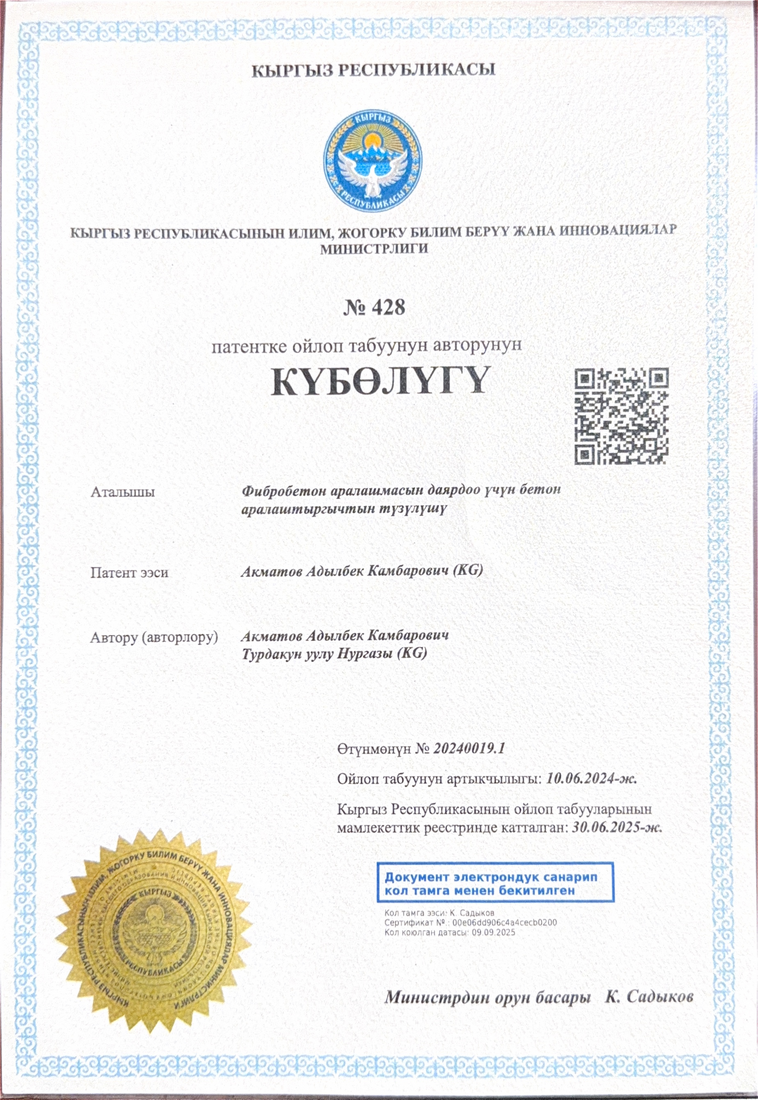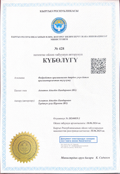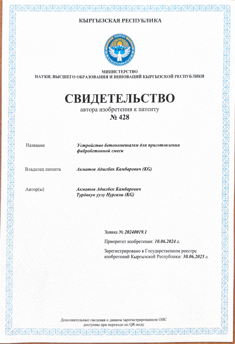 1 | Курманбек уулу Нурлан | Повышение сейсмостойкости транспортных сооружений | Разработка мостовых строит.коснтрукций | Статьи