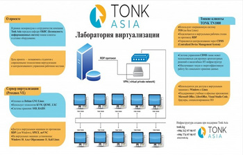 В рамках сотрудничества с компанией Тонк Азия на кафедре создана современная лаборатория виртуализации на тонких клиентах. Она позволяет студентам безопасно работать с виртуальными машинами, моделировать сетевые процессы, отрабатывать действия при сбоях и кибератаках, а также изучать принципы защиты информации в условиях, максимально приближенных к реальной инфраструктуре.