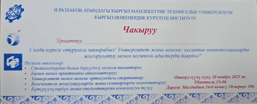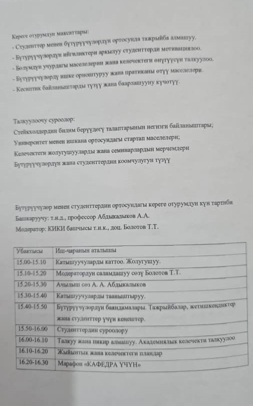 20.11.2025, саат 15.00, Малдыбаев А. кочосу 34-б, 10/106аудитория