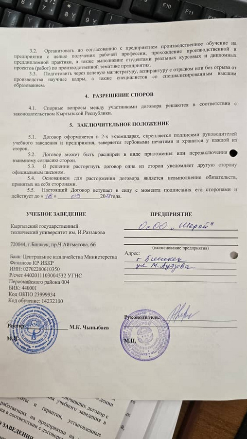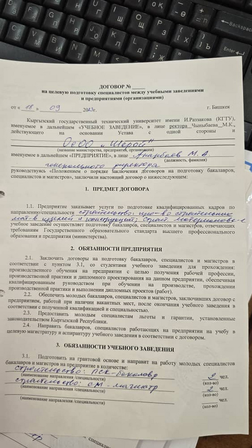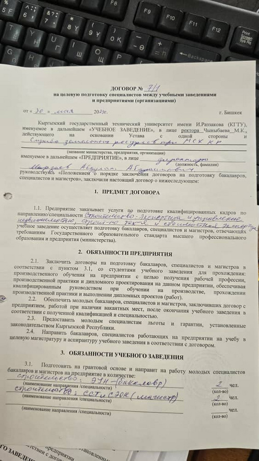 Кафедранын ишканалар жана ондуруштор ортосундагы келишимдер