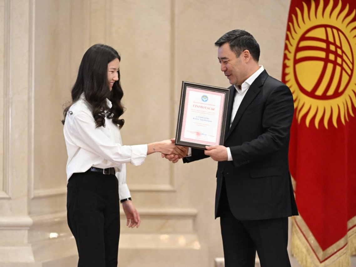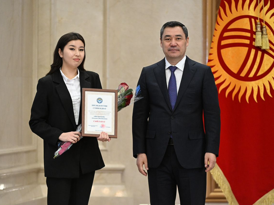 Вручение нашим лучшим студентам грамот от Жогорку Кенеша, а также студенты, удостоенные президентской стипендии.