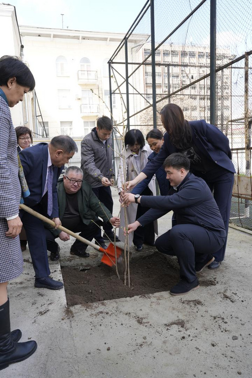 В завершение встречи участники поддержали государственную программу «Мурас», приняв участие в озеленении территории. Во дворе 11-го корпуса кампуса КГМИ преподаватели, студенты и представители индустрии совместно высадили аллею сирени. Этот выбор глубоко символичен: сирень олицетворяет обновление и созидательную энергию весны, а её долголетие станет живым воплощением преемственности поколений и укрепления связей между наукой и производством.