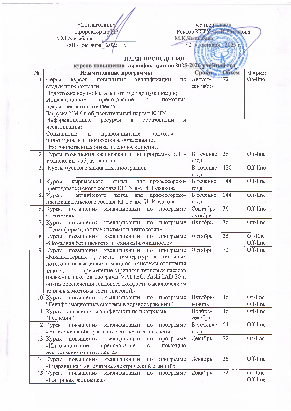The Department of Science and Professional Development is a structural subdivision of the I. Razzakov Kyrgyz State Technical University.