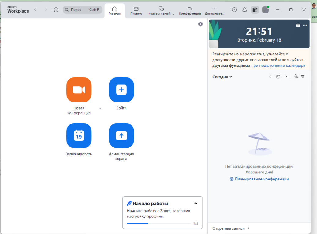 - About 10–15 minutes before the meeting starts, open Zoom and launch the conference. Participants can start joining, and you’ll have time to make sure everything is working properly.