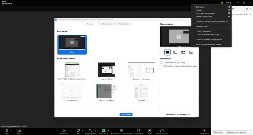 At the top, next to the “View” option, you can choose how participants are displayed on the screen: Speaker View, Gallery View, Multiple Speakers, Immersive View, etc.