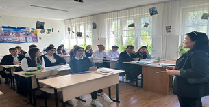 3-5 мая сотрудники кафедры Орусбаева К.И., Абдылдаева А. Б., Барылбекова А. Т. посетили  среднеобщеобразовательную школу в Жамбылской области с. Мерке., также 3 школы в районном центре…