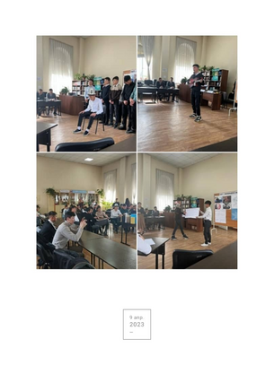 5 апреля 2023 года прошел открытый урок в СПО (Колледж) КГТУ имени И.Раззакова (кампус Н.Исанова) на тему «Здоровый образ жизни» по просьбе заведующей здрав. пункта Учкемпировой…