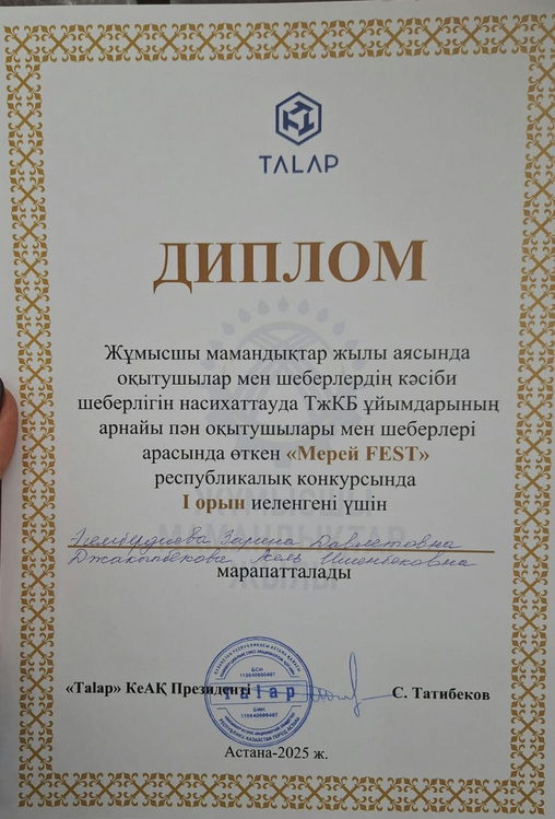 From November 19 to 21, 2025, the Merey-Fest International Competition, dedicated to the 90th anniversary of the Turkestan Higher Multidisciplinary Crafts College, was held in Turkestan, Republic of Kazakhstan. Representatives from 24 educational institutions from various countries participated in the event. The international expert was Maryam Mukhtarovna Yezieva, chairperson of the committee, associate professor at Akdeniz University (Antalya, Turkey), PhD, winner of international awards in haute couture, and professional fashion designer.