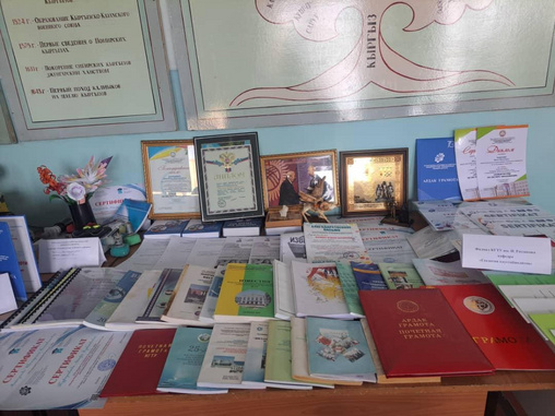 Кроме того, были организованы выставки. На них были представлены сертификаты, подтверждающие повышение квалификации преподавателей, учебники, учебные пособия, а также научные труды. Среди экспонатов особое место заняли научные публикации проф. Орунбая Шамшиевича, вышедшие в международных изданиях.