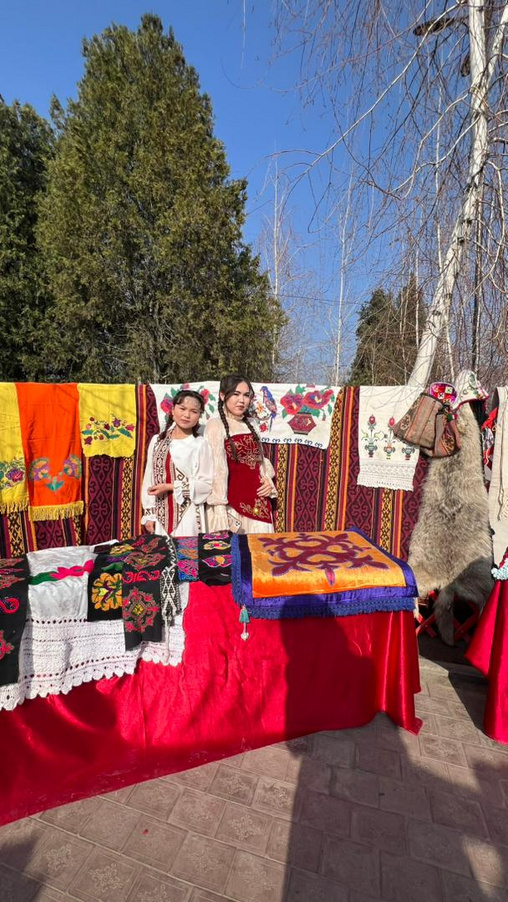 Майрамдын алкагында кыргыз элинин каада-салттары, кол өнөрчүлүк буюмдары, улуттук кийимдер көрсөтүлүп, катышуучуларга көтөрүңкү маанай тартууланды.