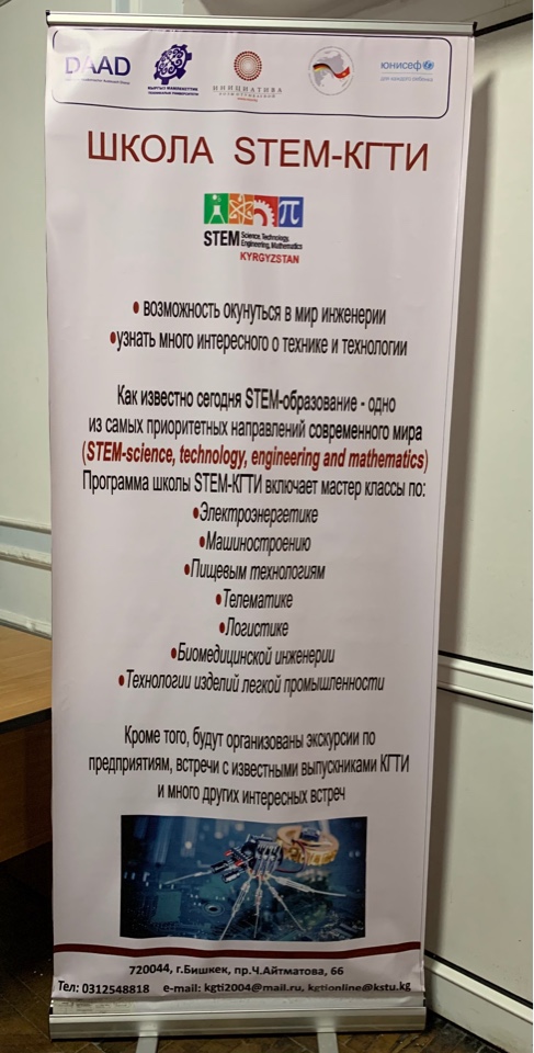 17 февраля 2021 года в 14:30 в КГТУ им.И.Раззакова состоится открытие зимней школы STEM-КГТИ. Данная зимняя школа проводится МОФ «Инициатива Розы Отунбаевой» совместно с КГТУ им.И.Раззакова, при поддержке Германской службы академических обменов (ДААД). В этом году школа STEM ориентирована для участниц проекта «Девочки в науке» ЮНИСЕФ.