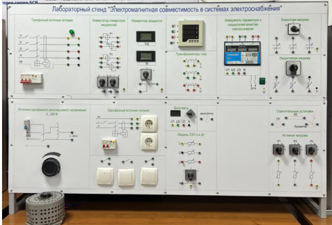 Стенд позволяет исследовать электромагнитную совместимость электроприемников и систем электроснабжения, производить контроль и анализ качества электрической энергии на соответствие требованиям ГОСТ.