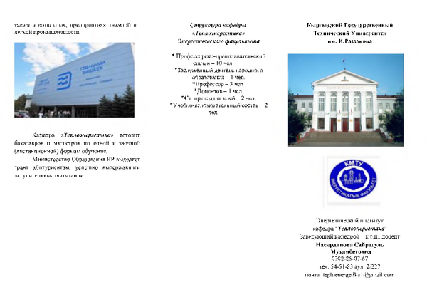 720044, г. Бишкек, пр. Чынгыза Айтматова (быв. пр. Мира) 66, КГТУ
