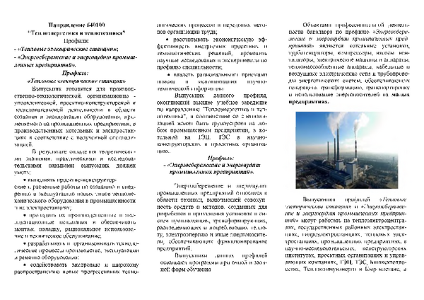 Направление 640100 «Теплоэнергетика и теплотехника»