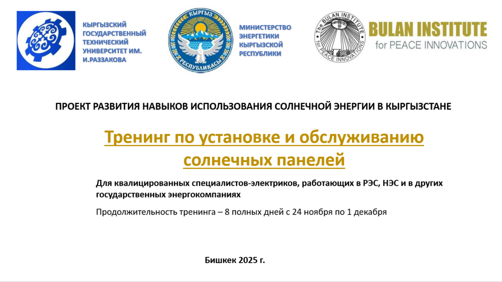 Работа выполнена в рамках проекта USAID Энергетика в Центральной Азии (PCA), реализуемого компанией Tetra Tech и Кыргызским государственным техническим университетом (КГТУ) им. И. Раззакова.