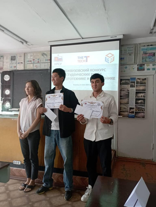 Участие студентов кафедры в межвузовском конкурсе студенческих работ по робототехнике и электронике. КРСУ. Бишкек. 2025 г.
