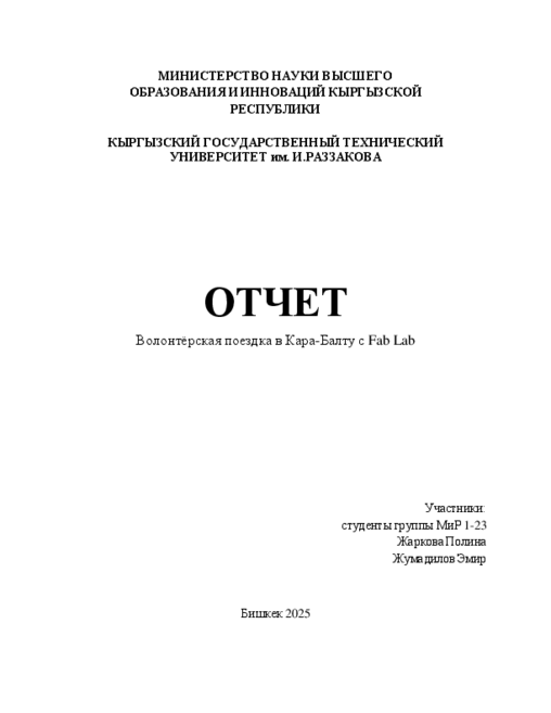 Волонтёрская поездка в город Кара-Балта оказалась полезной и значимой как для участников, так и для волонтёров. Проведённые мастер-классы позволили не только передать знания, но и внести вклад в развитие технического образования и цифровых навыков школьников. Подобные мероприятия целесообразно проводить и в дальнейшем.