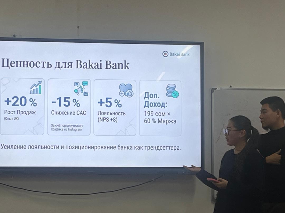 5 декабря состоялся завершающий этап сотрудничества с ОАО «Бакай Банк», в рамках которого был проведён кейс-чемпионат среди студентов КГТУ им. И. Раззакова. Банк предоставил четыре практико-ориентированных кейса по направлениям: информационные системы и технологии (2 кейса), HR-менеджмент (1 кейс) и маркетинг (1 кейс).