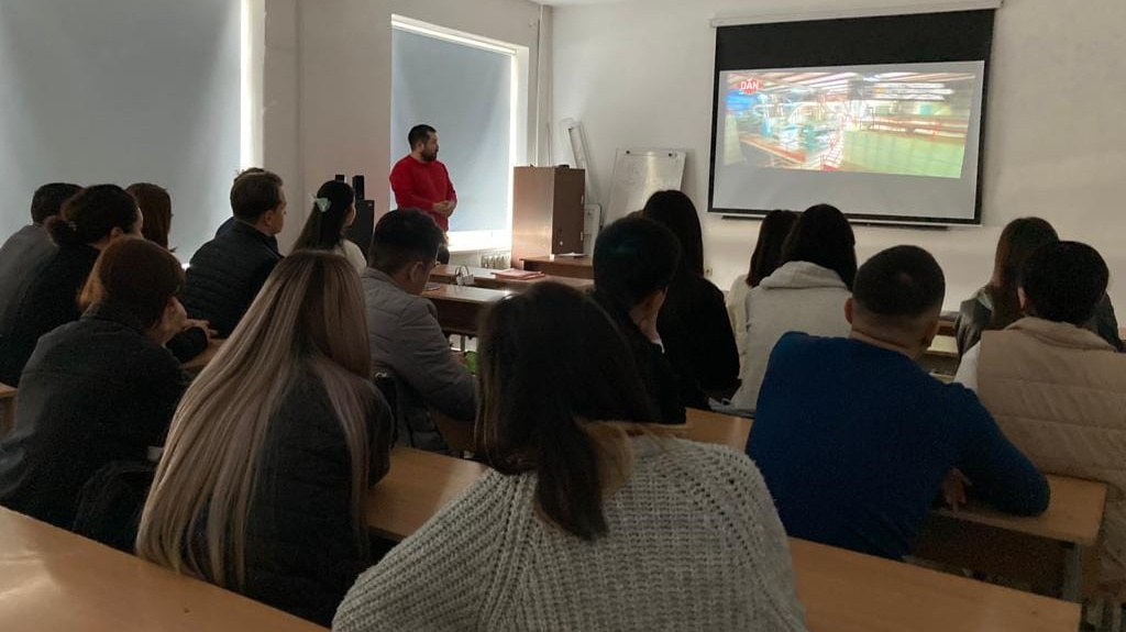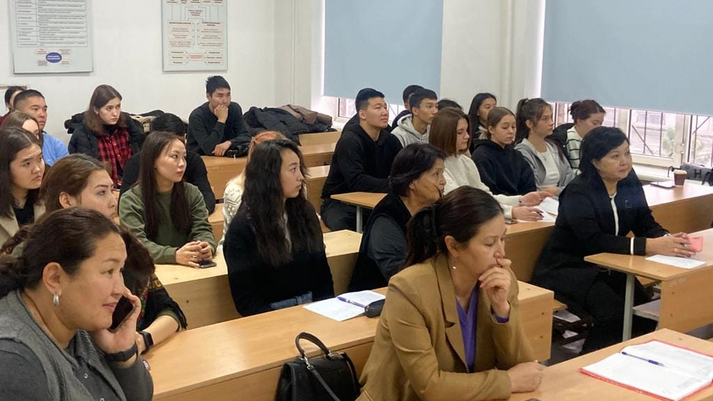 Директор филиала Таласской области провёл для студентов практическое занятие, рассказав о производственных процессах, финансовых аспектах бизнеса и карьерных перспективах в сфере менеджмента. Студентов особенно заинтересовал вопрос, какие качества необходимы для успешной карьеры в бизнесе.