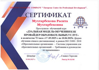 Мухтарбекова Расита Мухтарбековна