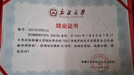 Преподаватели кафедры "Художественное проектирование изделий" старший преподаватель ЭгембердиеваЗаринаДавлетовна и преподаватель ТашмамбетоваАйнура Болотбековна от КГТУ им. И.Раззакова, прошли 10 дневный курс по повышению квалификации в знании китайского языка в рамках Синьцзянского  университета Китай г.Урумчи с 7 июля по 18 июля 2025года.