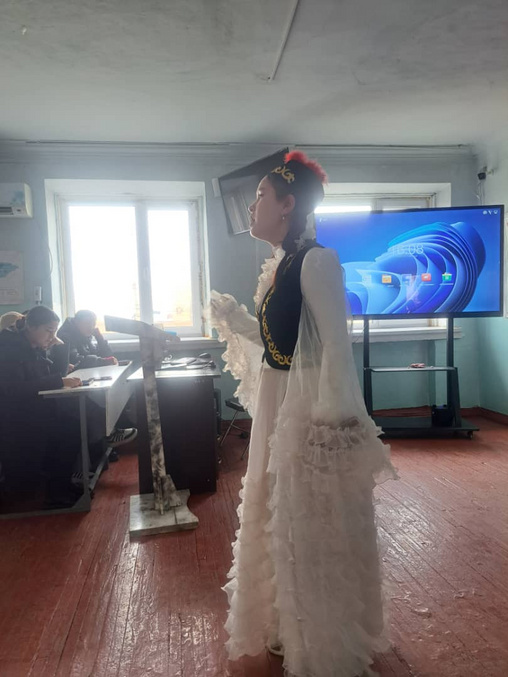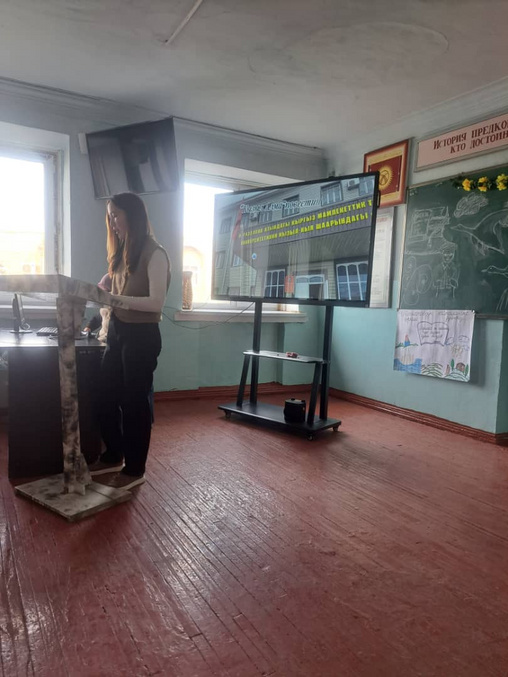 Сырт кабарчы: И. Раззаков атындагы КМТУнун Кызыл-Кыя шаарындагы филиалынын мамлекеттик тилди өнүктүрүү боюнча башкы адиси Толкунжан кызы Өмүркан.