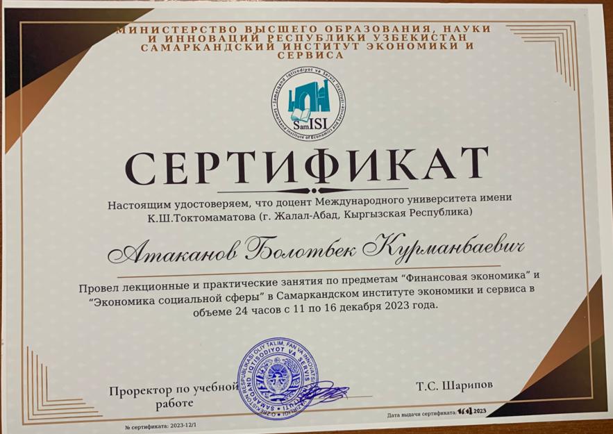 - Сертификат о повышении квалификации Атаканова Б.