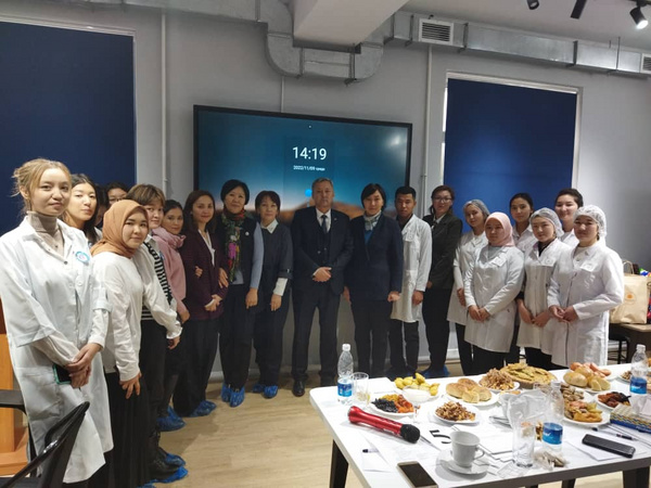 Курстун катышуучулары практикалык тажрыйбалары менен бөлүшүп, ашпозчулук чеберчилигин үйрөнүштү жана мектепте тамактанууну уюштуруунун заманбап ыкмаларын талкуулашты.