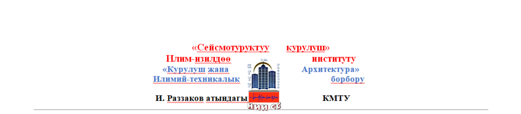 «Сейсмотуруктуу курулуш» Илим-изилдөө институту (СК ИИИ СК) жана «Курулуш жана Архитектура» Илимий-техникалык борбору (КжА ИТБ) И. Раззаков ат. Кыргыз мамлекеттик техникалык университетинин (КМТУ) түзүмдүк бөлүмдөрү болуп эсептелет.