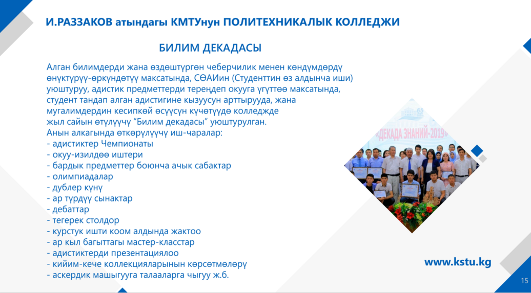 КГТУ тарабынан ишке ашырылып жаткан долбоорлор