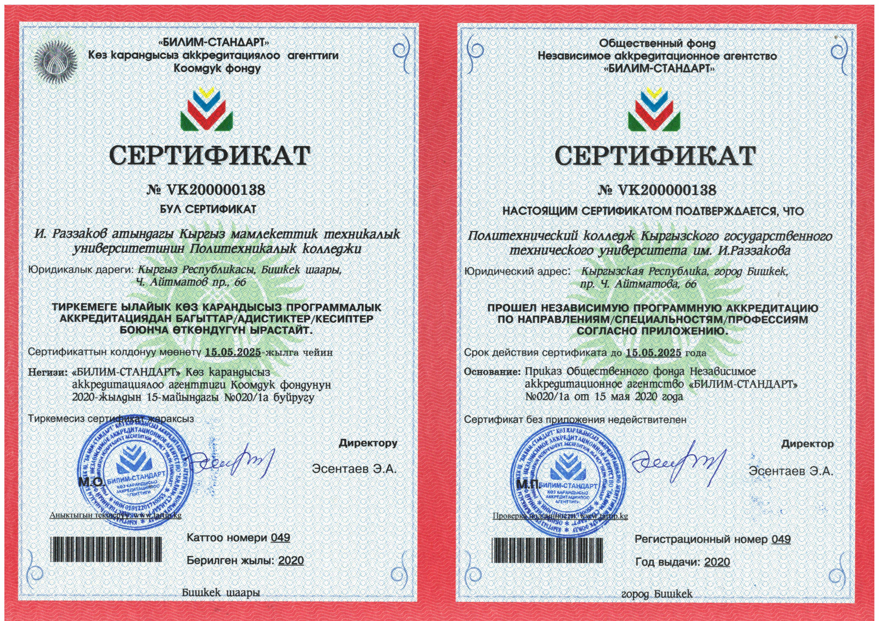 И. Раззаков атындагы КМТУнун Политехникалык колледжинин сайтына кош келиӊиз!