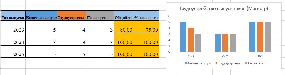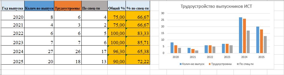 Трудоустройство выпускников кафедры направления 740600 "ТПиУП" и 710200 "ИСиТ" (за 2 года)