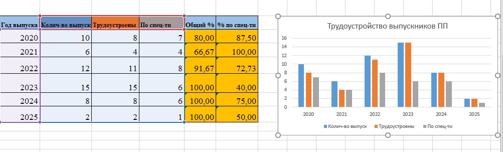 Трудоустройство выпускников кафедры за 2020 уч.год
