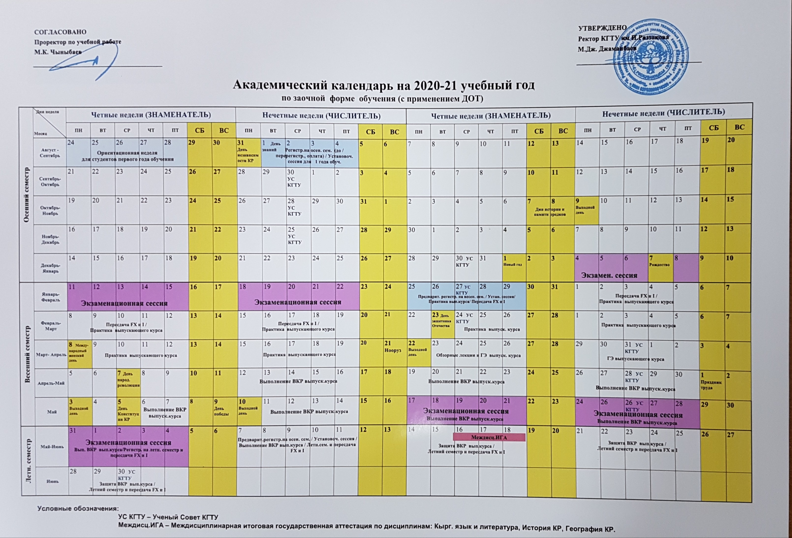 И. атындагы КМТУдагы окуу процесси. Раззакова Болонья кредиттик тутуму боюнча уюштурулган. Бүтүрүүчү бөлүмдөрдө ишке ашырылып жаткан билим берүү программаларынын саны жана аталышы билим берүү ишмердүүлүгүнө лицензиясы бар багыттардын жана профилдердин аталыштарына дал келет. Окуу процесси бекитилген сабактардын графиги жана окуу планынын графиги боюнча жүргүзүлөт. Кафедраларда сабактарды өткөрүү жана студенттерге келүү жөнүндө эскертүүлөр кафедра журналдарында жана лабораториялык изилдөөлөрдүн журналдарында жана АВНде жазылат. Студенттердин жеке билим берүү траекториясын жүзөгө ашырууга жардам берүү үчүн, академиялык кеңешчилер кызматы уюштурулган, алар билим берүү процессин уюштуруу үчүн бардык керектүү маалыматтык материалдарды даярдап, студенттерге беришет. Кредиттерди жана билим берүү программаларын иштеп чыгуунун модулдук-рейтингдик бааларын колдонуп окуп жаткан ЭФ студенттери үчүн тренингдердин графиги бекитилген жумушчу окуу пландарынын негизинде жана студенттердин каттоосуна ылайык түзүлөт.
