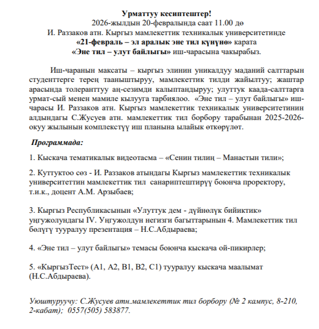 И. Раззаков атн. КМТУнун өнүгүү стратегиясынын программасы