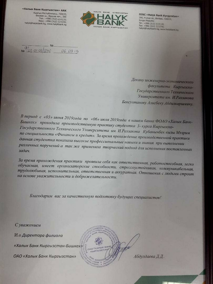И.Раззаков атн. КМТУнун киреше-чыгашалар боюнча маалыматы
