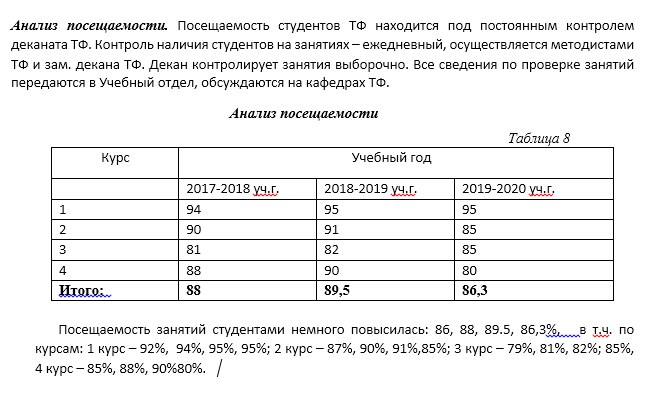 - ТИ студенттеринин сабактарга катышуусу (орто эсеп менен 85-95%) ТИ деканатынын туруктуу көзөмөлүндө. Студенттердин сабакта болушун көзөмөлдөө күн сайын жүргүзүлөт. Сабактарды текшерүү боюнча бардык маалыматтар окуу бөлүмүнө өткөрүлүп берилет, ТИ кафедраларында талкууланат; шилтеме менен