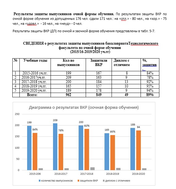 - БКИди коргоо: күндүзгү формадагы окуган кабыл алынган 176 адамдын ичинен 171 адамды ийгиликтүү коргошту (97%), анын ичинде "эн жакшы" - 80 адам, "жакшы" - 75 адам, "канааттандырарлык" - 16 адам; сырттан окуу болумунон кабыл аланган 28 адамдын ичинен 28 адам коргоду (100%), анын ичинде “эн жакшы” - 11 адам; “жакшы” - 11; “канааттандырарлык” -6 адам; шилтеме менен
