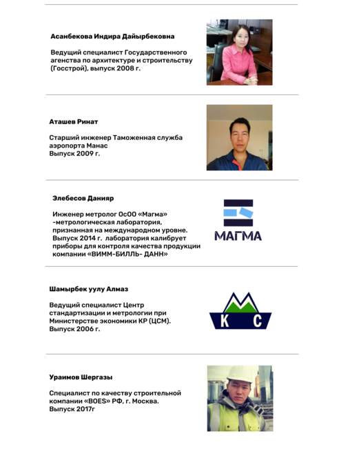 Бүтүрүүчүлөр эмгектенген жерлер:
