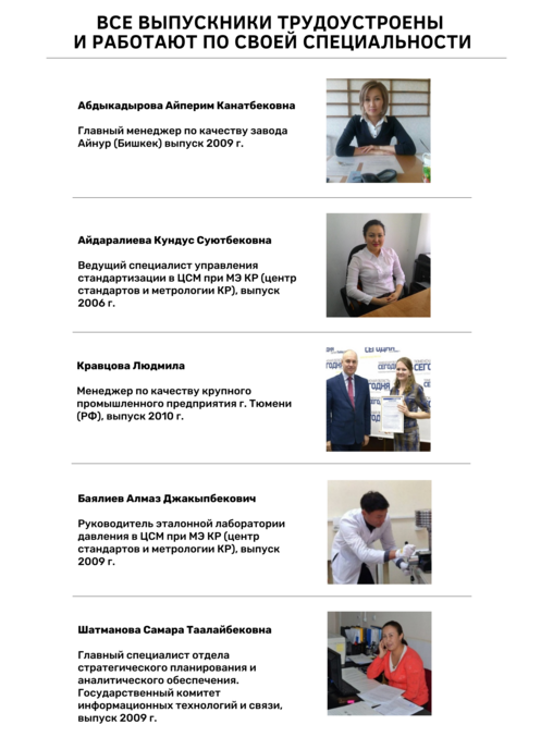 Бул кесиптин артыкчылыктары: бул тармактагы диплом сизге өлчөөчү жабдуулар колдонулган кайсы гана өнөр жайда же илимий тармакта болбосун иштөөгө мүмкүндүк берет. Бул адистик эл аралык компанияларда жогорку суроо-талапка ээ.