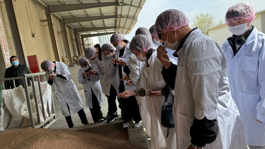 Лекциядан кийин студенттер компаниянын өндүрүштүк жайларын кыдырып, чийки заттан чечевица, буурчак жана башка даяр продукциялар кантип жасаларын көрүп билишти. Жакшы маанай жана кызуу талкуулар кайтып келаткан жолдо да уланып турду.
