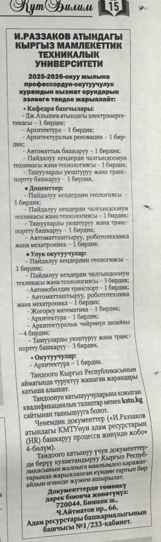 И.Раззаков атн. КМТУнун ардактуу профессорлору