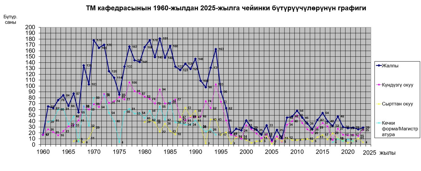 Кафедранын ОП бүтүрүүчүлөрү жергиликтүү ишканалар тарабынан да, ири эл аралык компаниялар тарабынан да суроо-талап жогору, мисалы, 2019-жылы "Кумтөр Голд Компани" ЖАК алтын ылгоочу фабрикасынын ар кандай кызматтарынын инженердик-техникалык кызматкерлеринин 4 вакансиясын ээлөө сынагында машина куруу технологиясы кафедрасынын бүтүрүүчүлөрү 3 позицияга тандалып алынган, бул бир жагынан билим берүү программасынын сапатынын жогорку деңгээлин, бүтүрүүчүлөрдүн эмгек рыногунда атаандаштыкка жөндөмдүүлүгүн чагылдырган маанилүү индикатор болуп саналат жана ошого жараша алардын ишке орношуусунун кепилдиги болуп саналат, экинчи жагынан. Төмөндө кафедранын билим берүү программаларынын бүтүрүүчүлөрүнүн ишке орношуусу боюнча статистикалык маалымат берилген.