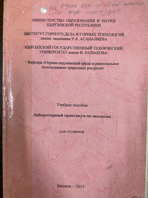 "Техносфералык коопсуздук" кафедрасынын монографиялары жана окуу куралдары