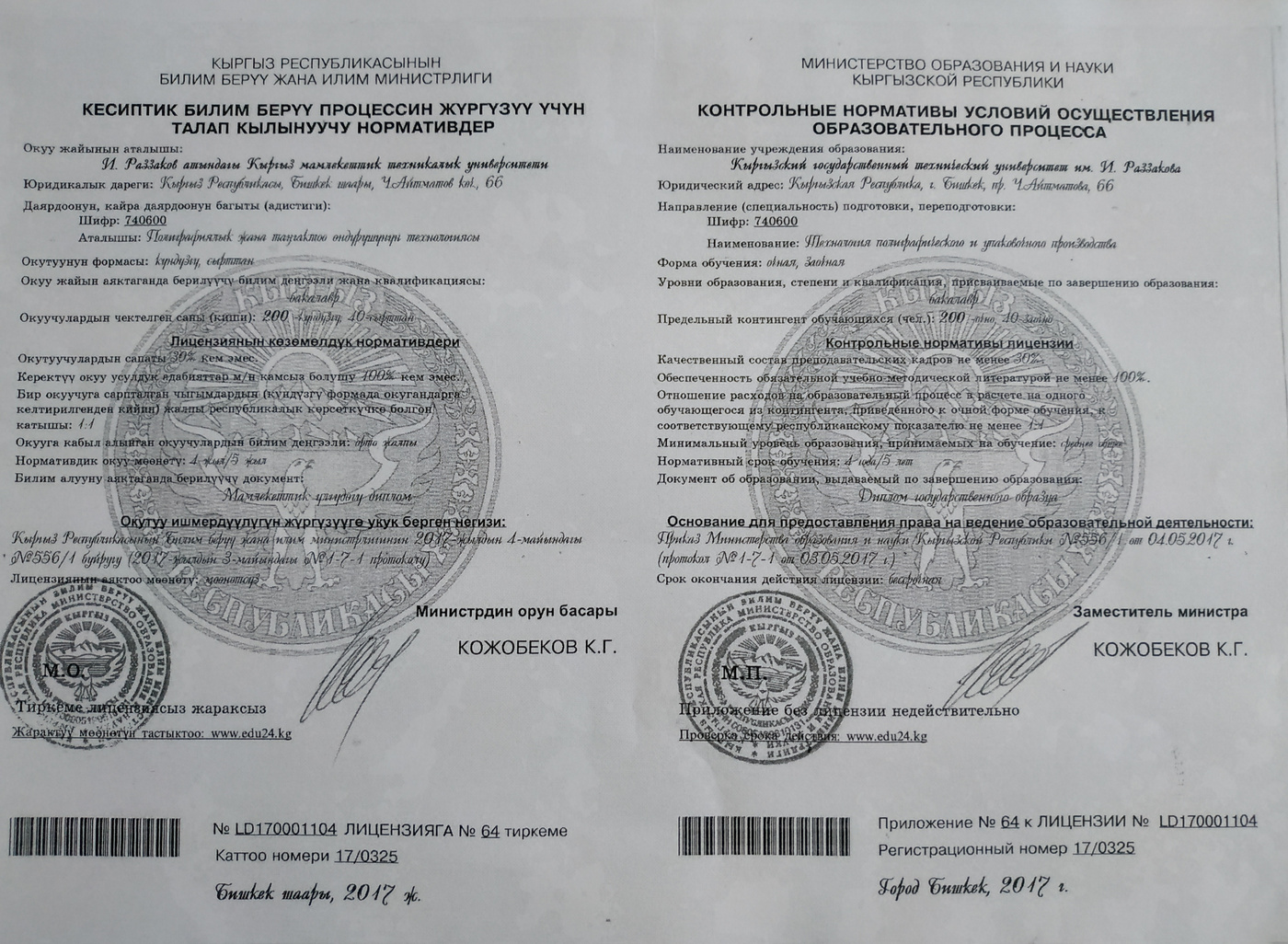Лицензия направления 740600 "Технология полиграфического и упаковочного производства" (бакалавр)