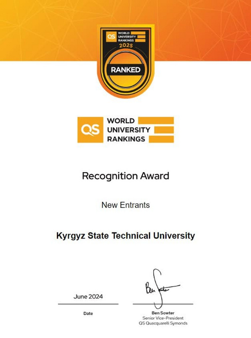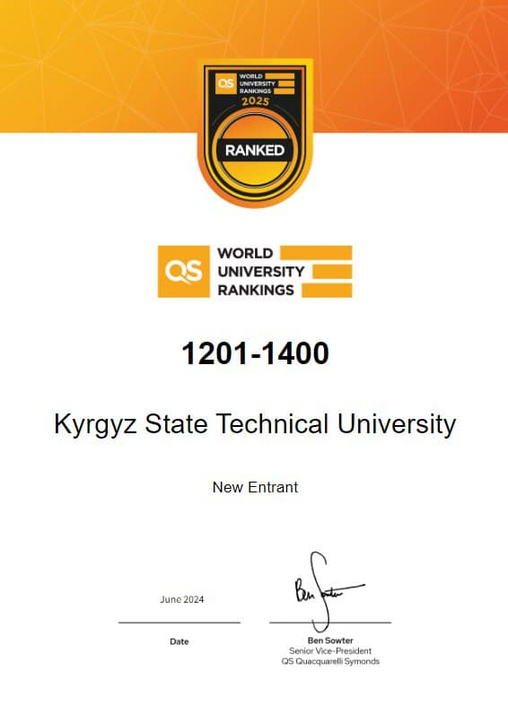 Включение в QS World University Rankings укрепляет позиции Кыргызского государственного технического университета им. И. Раззакова на мировой академической арене и открывает новые возможности для студентов и преподавателей.