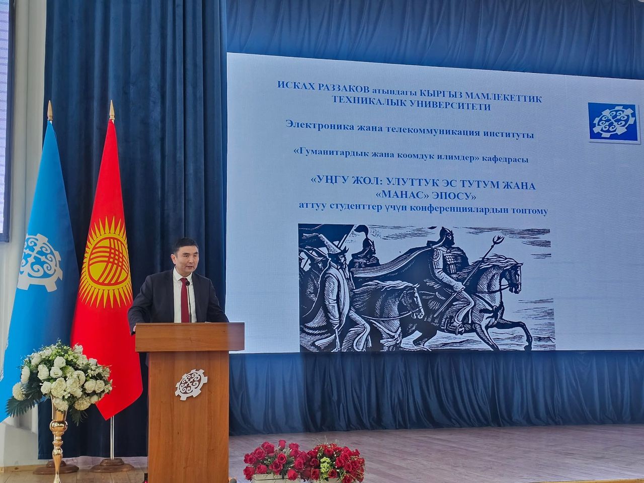9 декабря 2025 года в Кыргызском государственном техническом университете имени Исхака Раззакова кафедрой «Гуманитарные и общественные науки» была проведена студенческая научная конференция на тему «Уңгу жол: национальная память и эпос “Манас”».