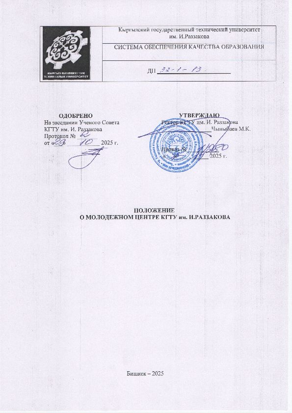 ПОЛОЖЕНИЕ О МОЛОДЕЖНОМ ЦЕНТРЕ КГТУ им. И.РАЗЗАКОВА